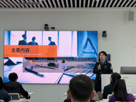 宣讲中,崔玖结合案例,详解住宿登记、护照查验、居留许可办理等法规,明晰非法居留等行为的后果,提醒关注签证有效期、及时办理证件延期。同时,介绍针对外籍毕业生创新创业、实习的签证支持政策,鼓励合理规划学业职业。现场还说明日常注意事项,给出护照财物遗失应急流程与紧急联系方式。会后,留学生就学习生活问题咨询,警官耐心答疑。